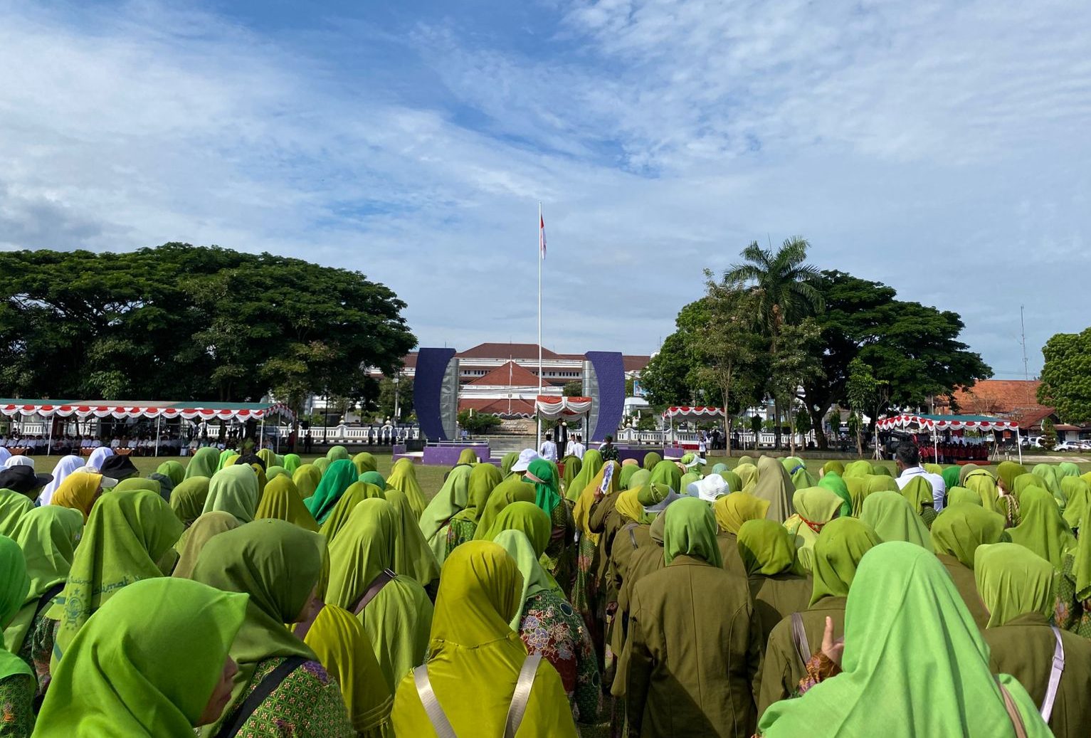 Suasana apel penutupan berlangsung hangat dan penuh haru. Para siswa terlihat antusias sekaligus sedih melepas kakak-kakak mahasiswa yang telah menjadi bagian dari keseharian mereka. Beberapa siswa bahkan membawa surat kecil dan gambar sebagai tanda kenang-kenangan, simbol kedekatan emosional yang terjalin selama masa magang.