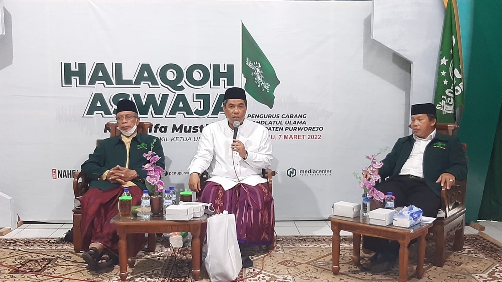 Hal itu disampaikan Wakil Ketua PBNU Bidang Keagamaan dan Sosial, KH Zulfa Musthofa saat memberikan paparan materi pada kegiatan Halaqoh Aswaja sekaligus meninjau gedung PCNU Kabupaten Purworejo di Jln KH Zarkasyi Kelurahan Lugosobo yang baru saja selesai dibangun, Selasa (8/3).